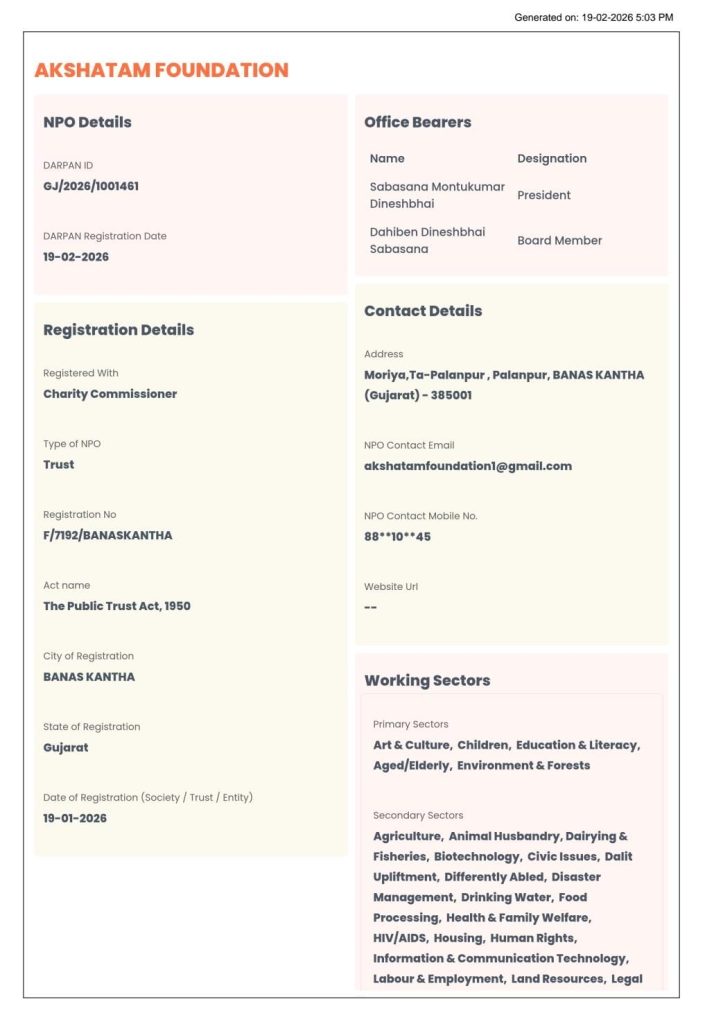 NGO Darpan Certificate (Page 2)